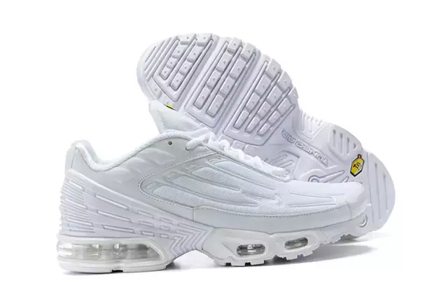 Fotos reais do produto. O Air Max TN3 "Triple White" é um tênis premium que combina estilo clean e tecnologia avançada para máximo conforto. Com seu design totalmente branco, ele oferece um visual moderno e versátil, perfeito para qualquer ocasião.