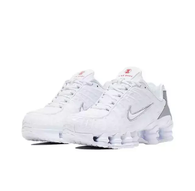Fotos reais do produto. O Nike Shox 12 Molas 'White Metallic' é um tênis premium que combina design sofisticado com tecnologia inovadora para oferecer conforto e estilo incomparáveis. Com seu acabamento em branco metálico, este modelo se destaca tanto no visual quanto na performance.